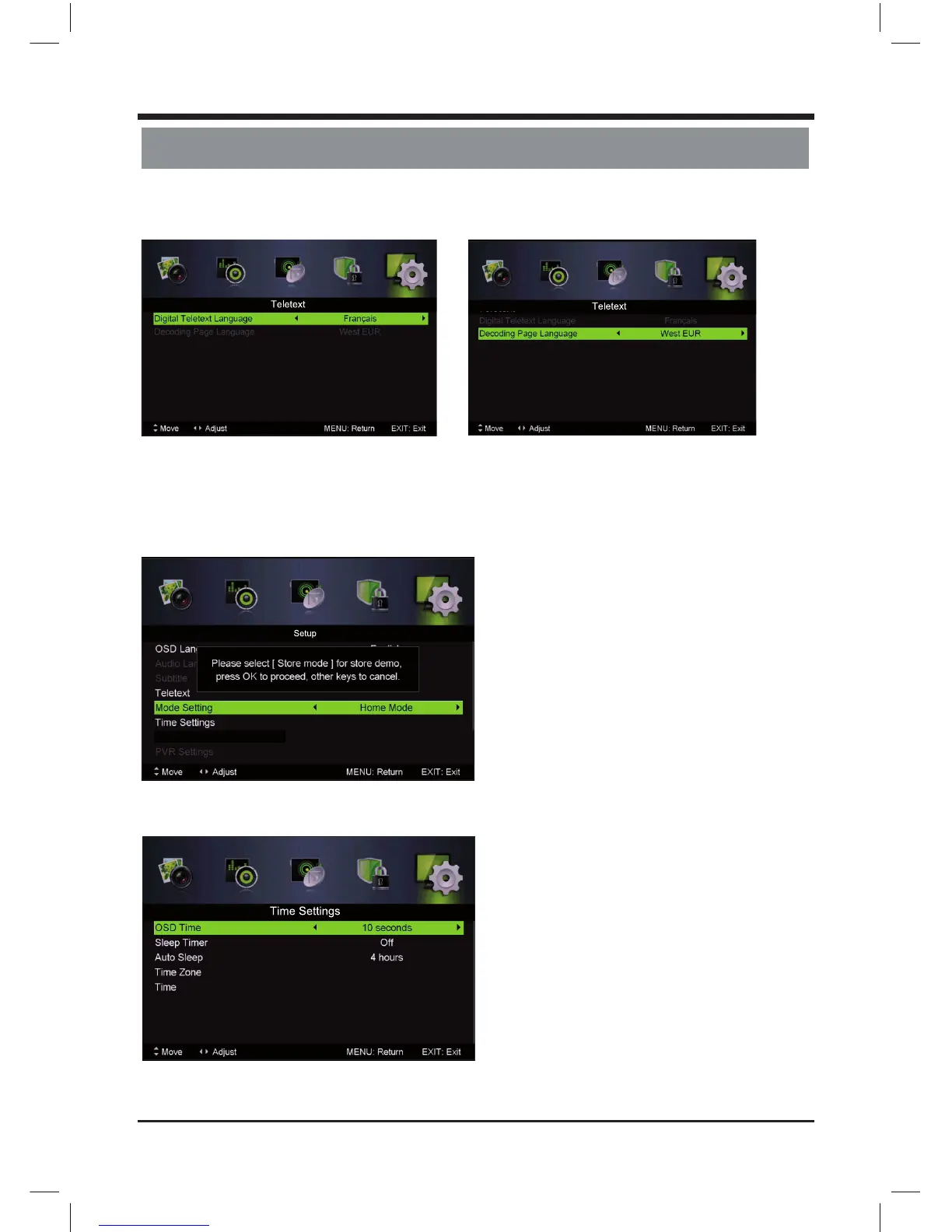 Press / button to select Teletext, then press Enter / button to enter sub-menu.