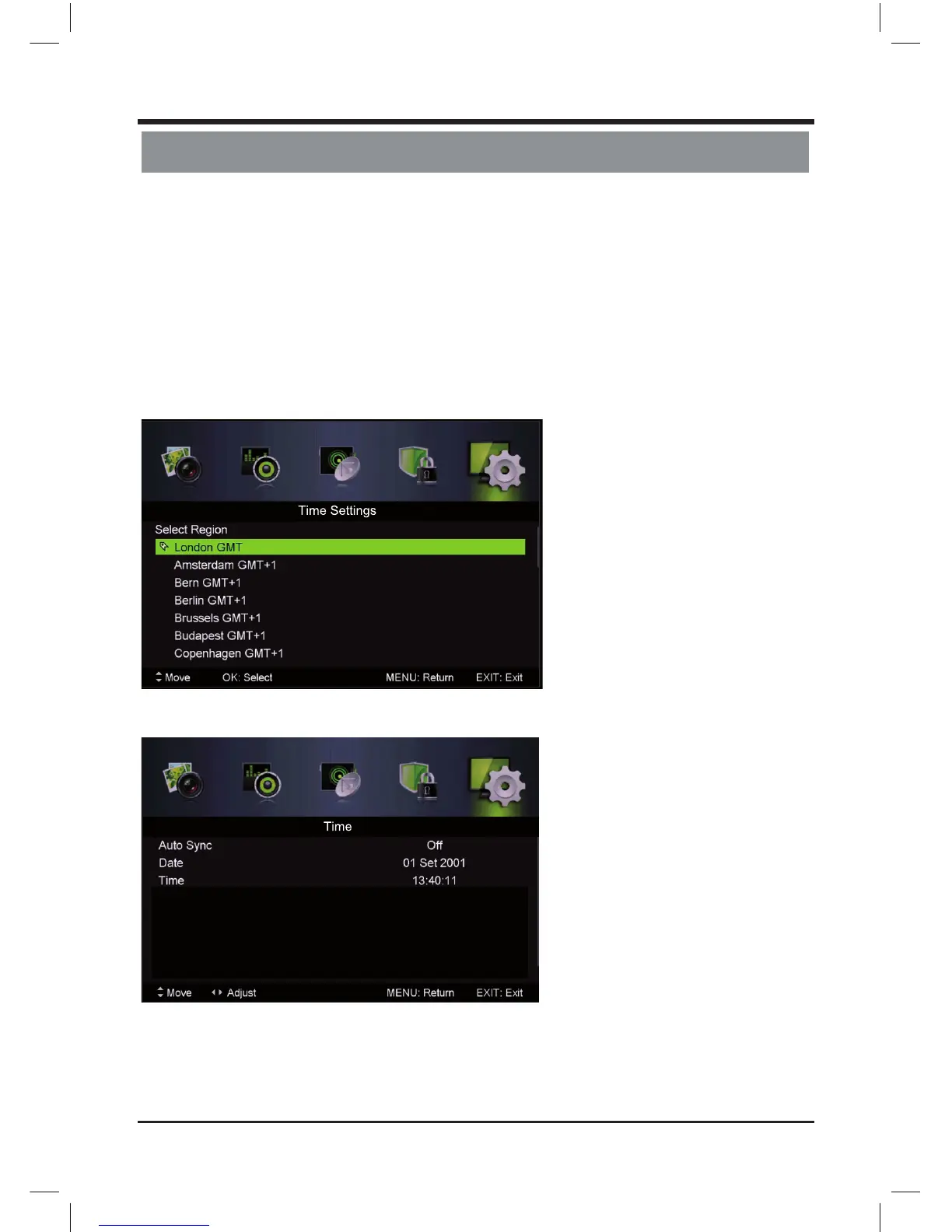 Press / button to select Time, then press Enter / button to enter sub-menu.