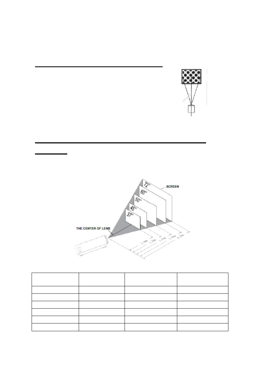 screen. This is the projection distance and the screen diagonal indicated in
