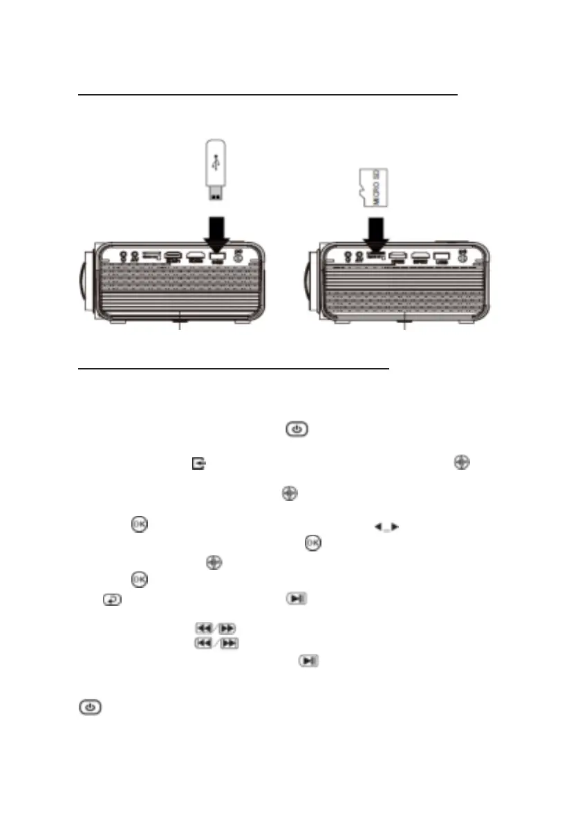 Schakel de projector uit voordat u de USB/MicroSD-kaart aansluit.