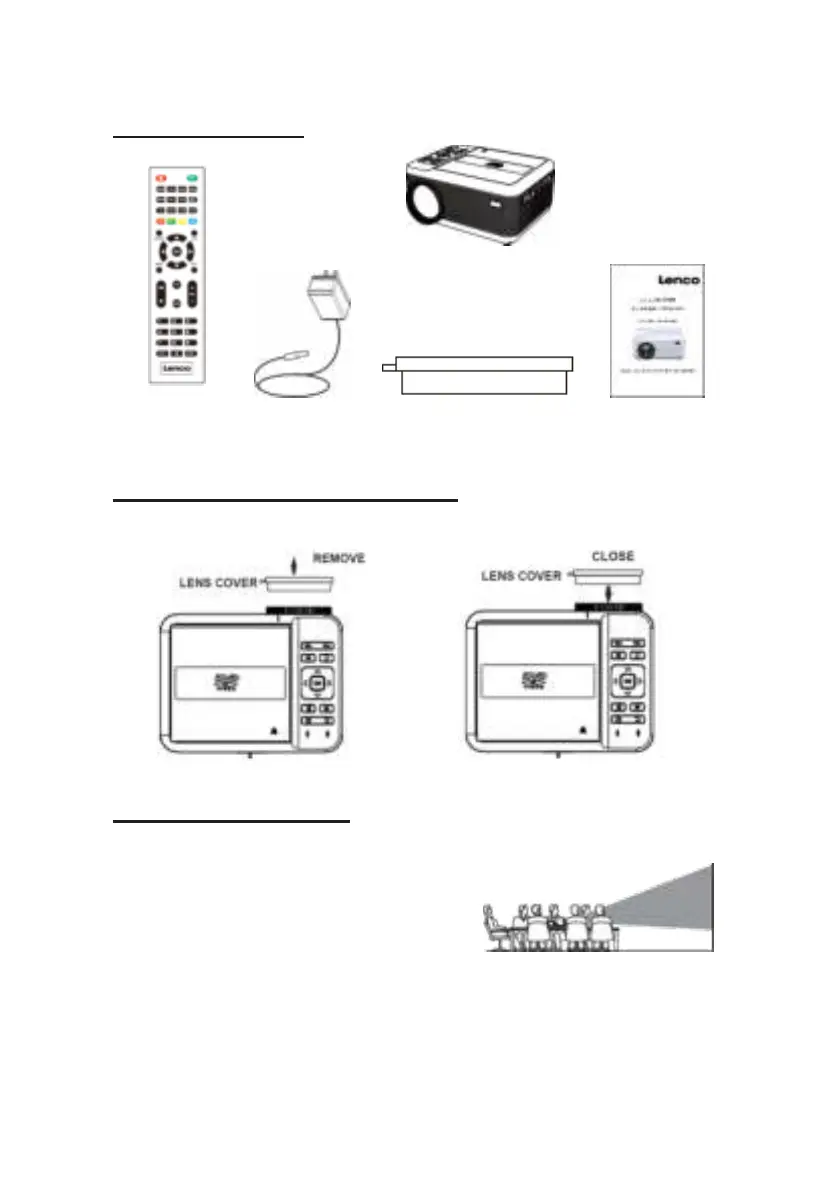 LENCO LPJ-500 - Whats in the Box; Remove & Close the Lens Cover; Placing Your Projector