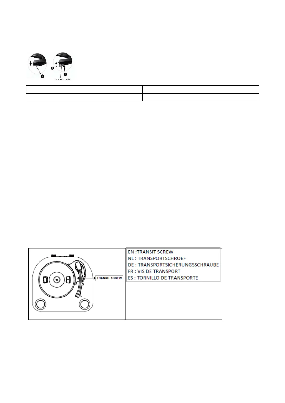 De platenspeler is beveiligd voor verzending met een transportschroef. Gebruik een muntje of schroevendraaier om