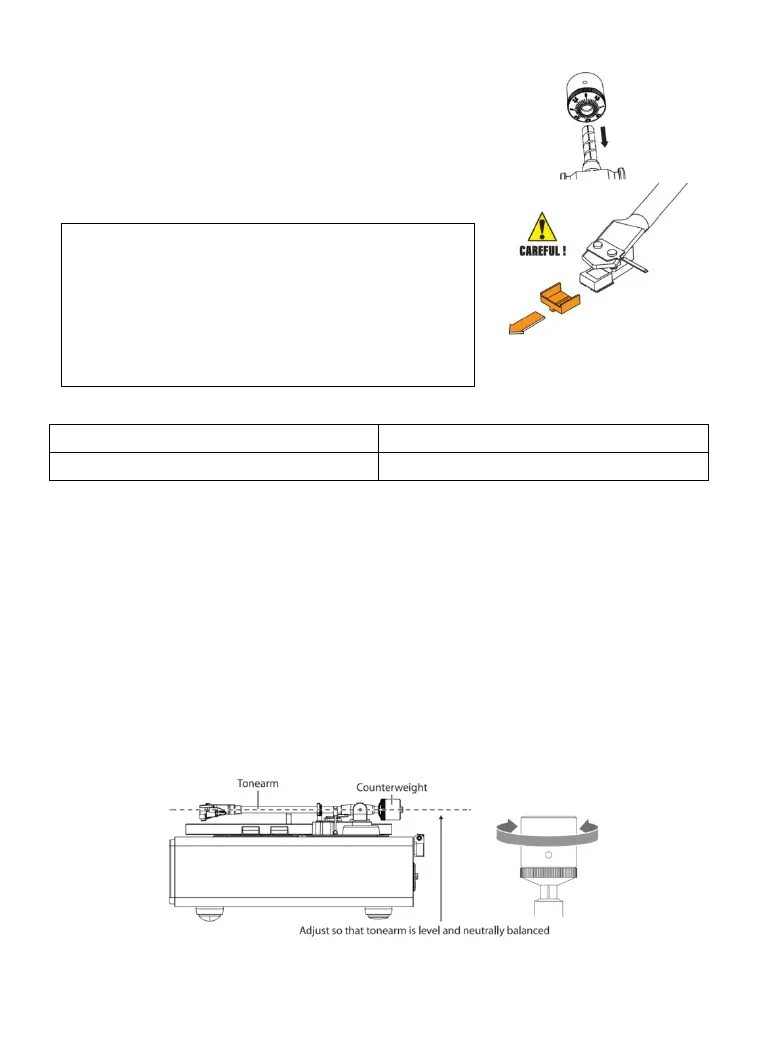 5. Carefully rotate the counterweight until the tonearm achieves a