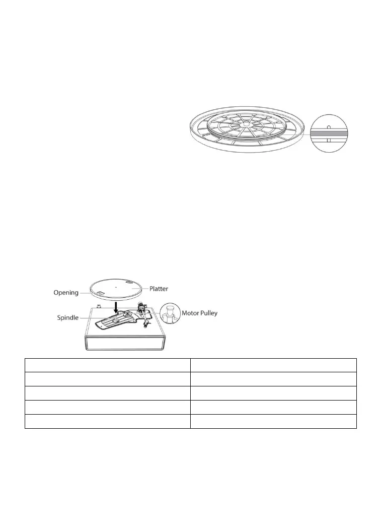 Zorg ervoor dat het draaiplateau volledig op de spindel is