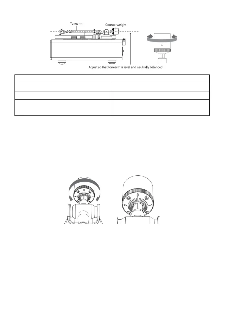 7. Draai ten slotte het contragewicht en de naalddrukknop samen