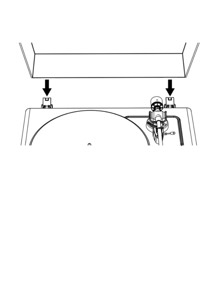 Insert the hinge pockets of the lid onto the hinges of the turntable.