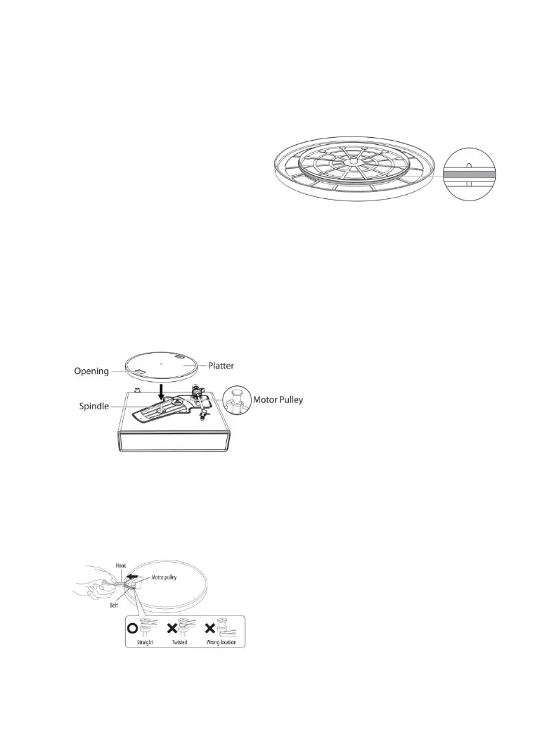 Align one of the platter openings with the motor pulley, and while