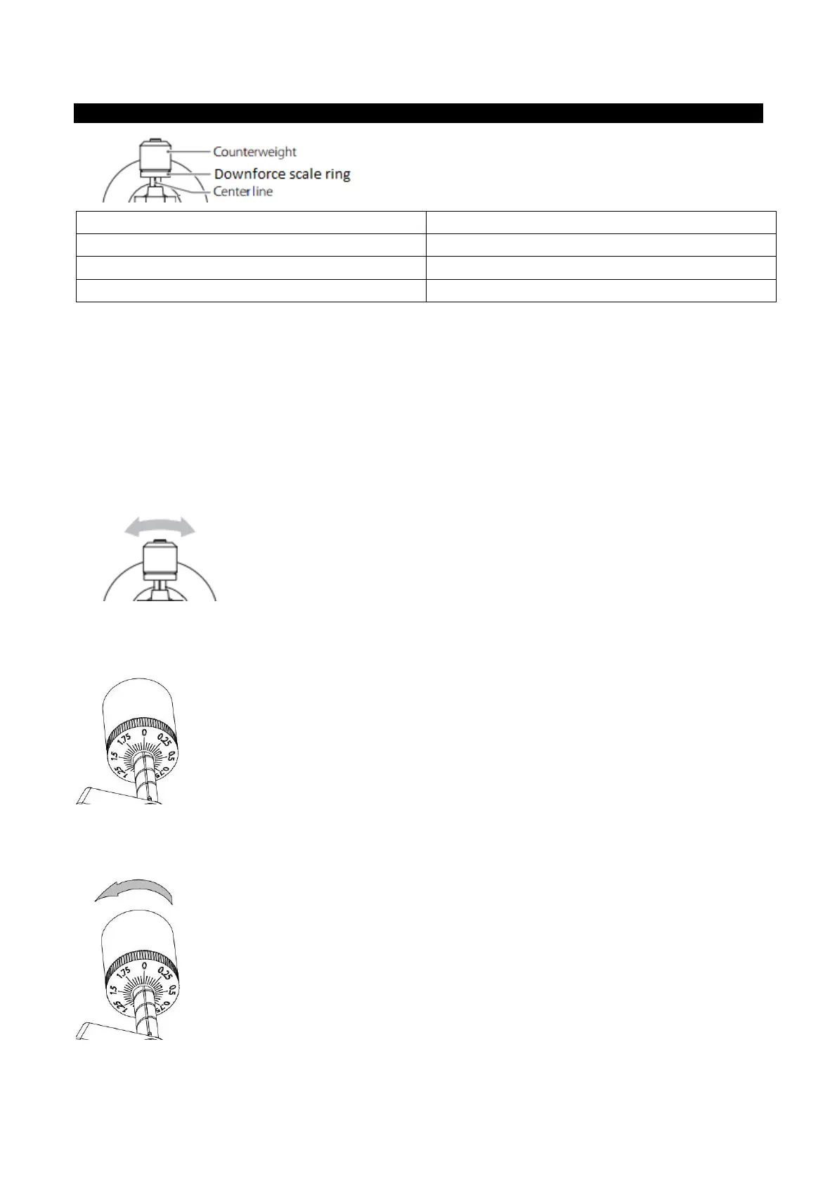 Druk en draai het tegengewicht voorzichtig op de achterzijde van de toonarm (met de schaal richting de voorzijde