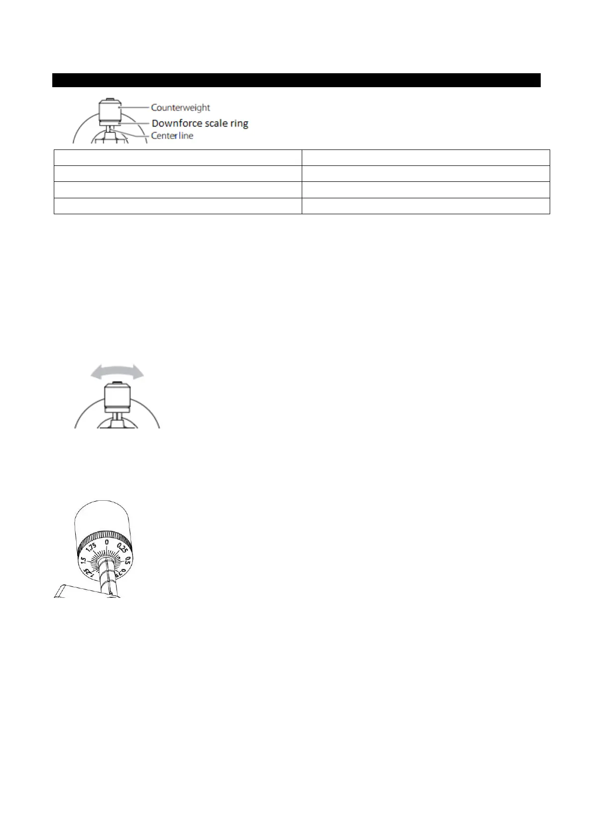 Tournez avec précaution le contrepoids jusqu’à ce que le bras de lecture soit équilibré. Le bras de lecture doit
