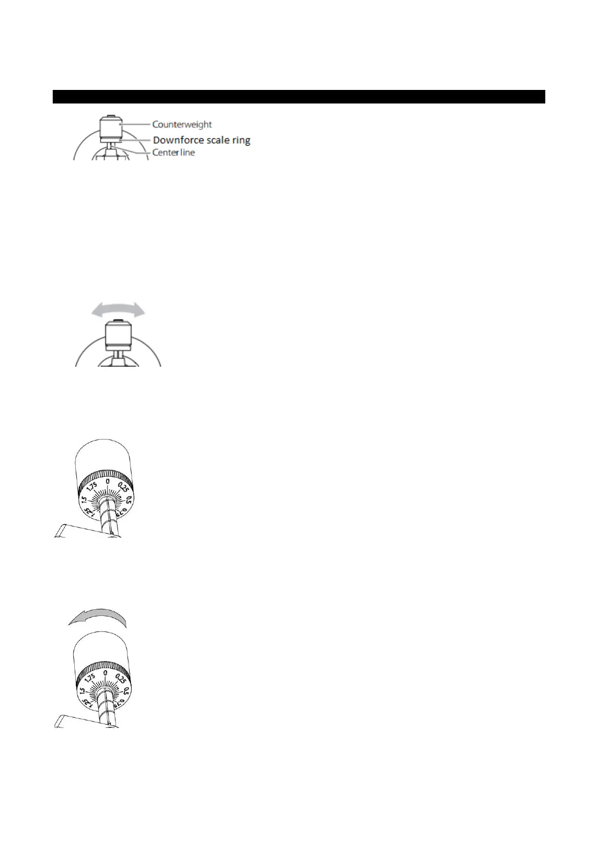 Gently push and turn the Counterweight onto the rear of the tonearm (with the scale facing toward the front of