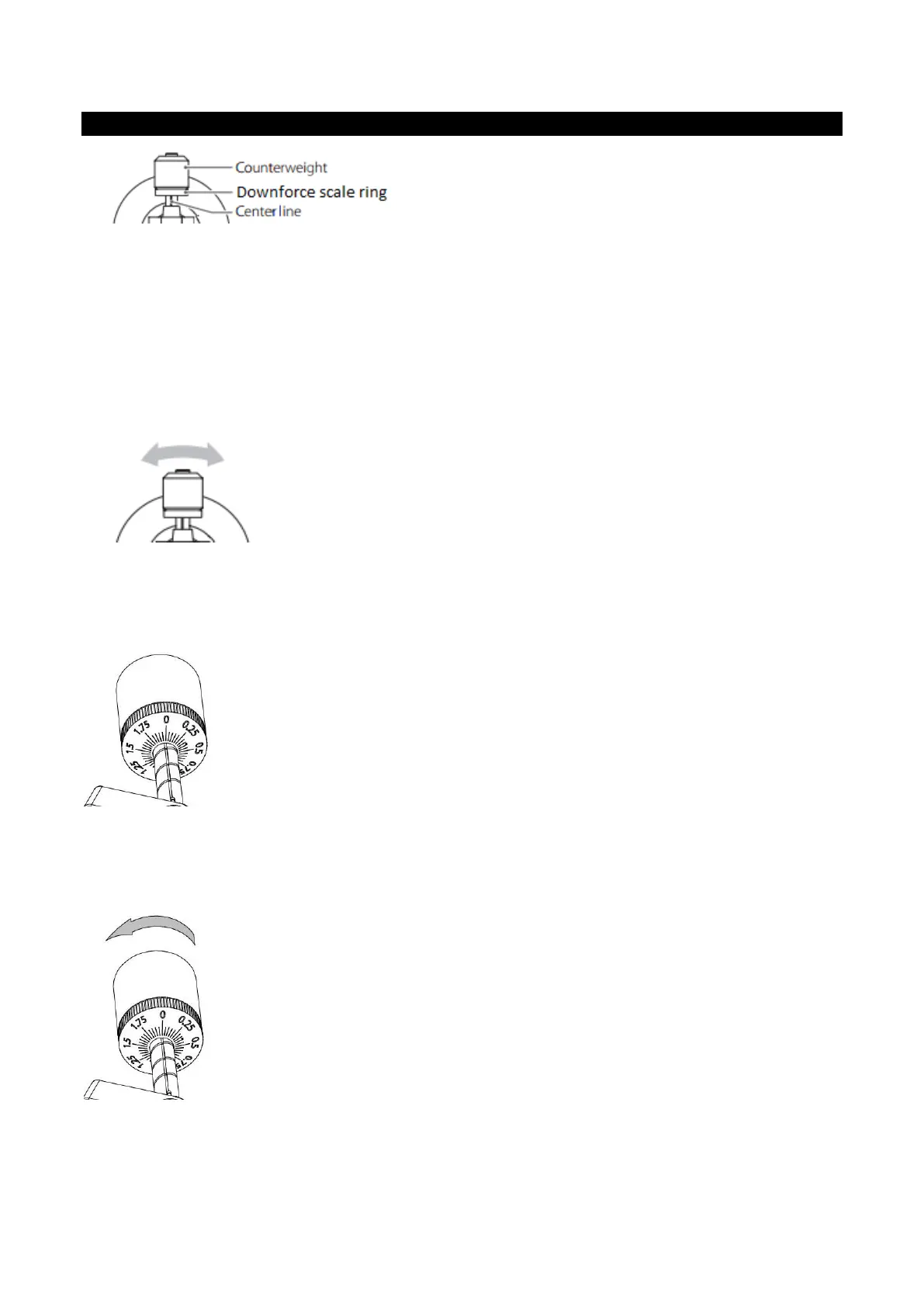 rotate the Down force Scale ring until the zero is in line with black line on the rear of the tonearm. Check whether