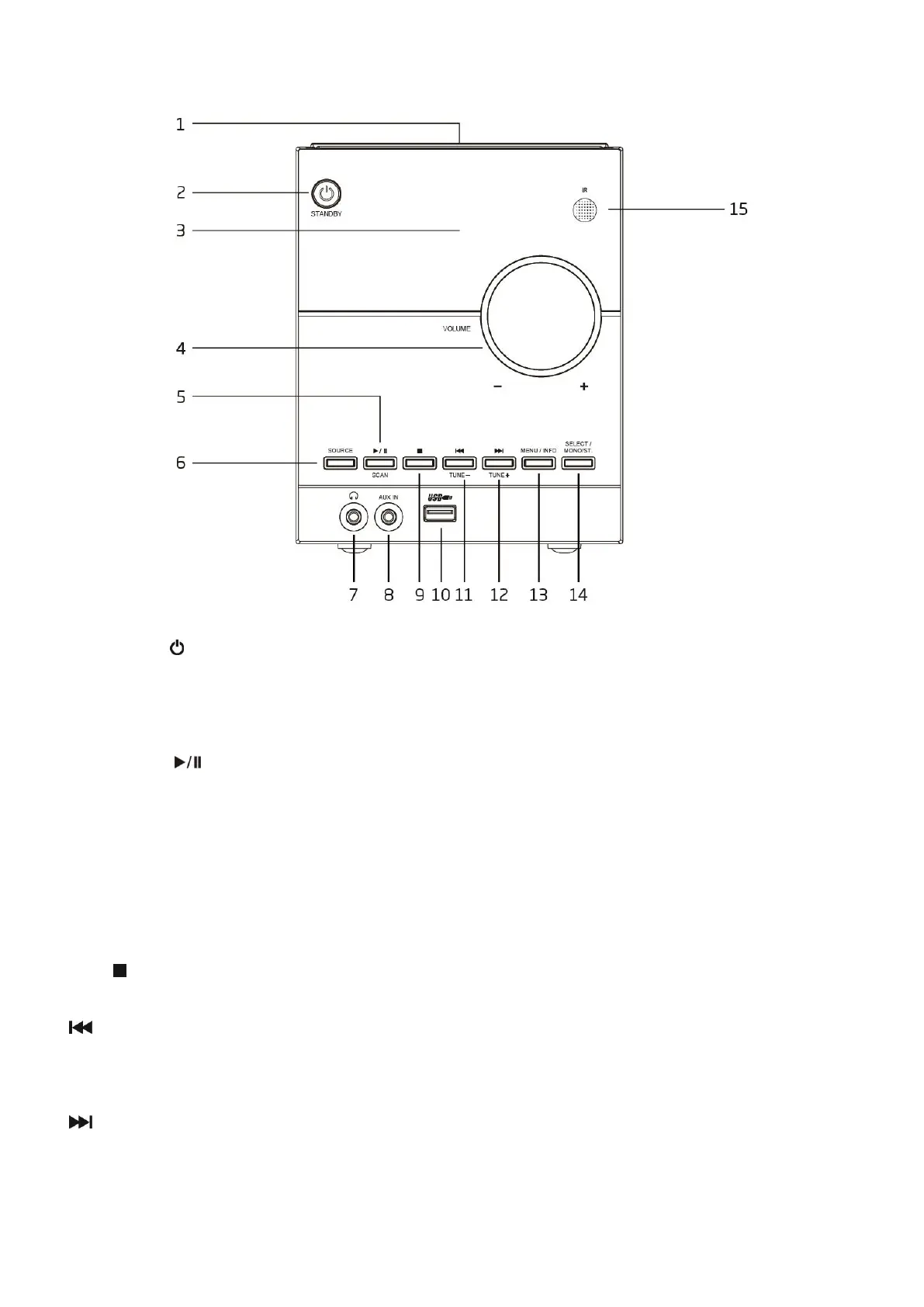 Appuyez dessus pour arrêter la lecture CD/USB.