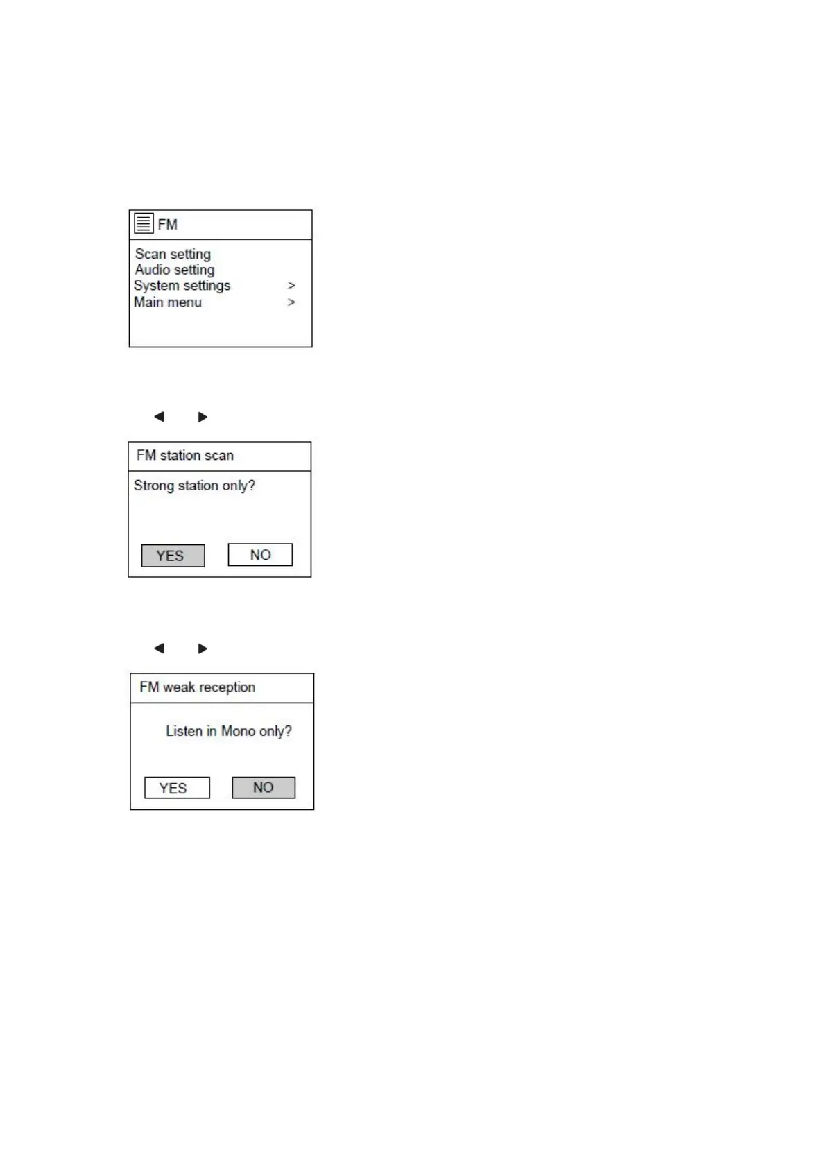 If scan setting is selected, the following page will appear, turn the navigation knob or press