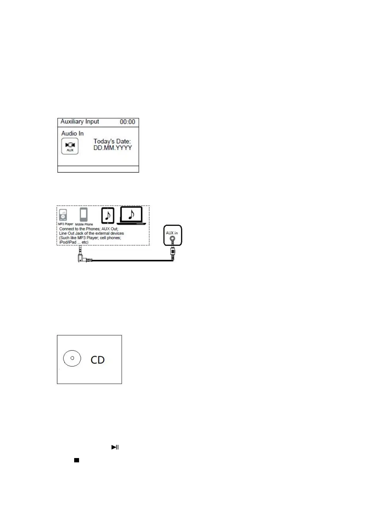 2. Connect the external audio source to the Aux in 3.5mm stereo socket.