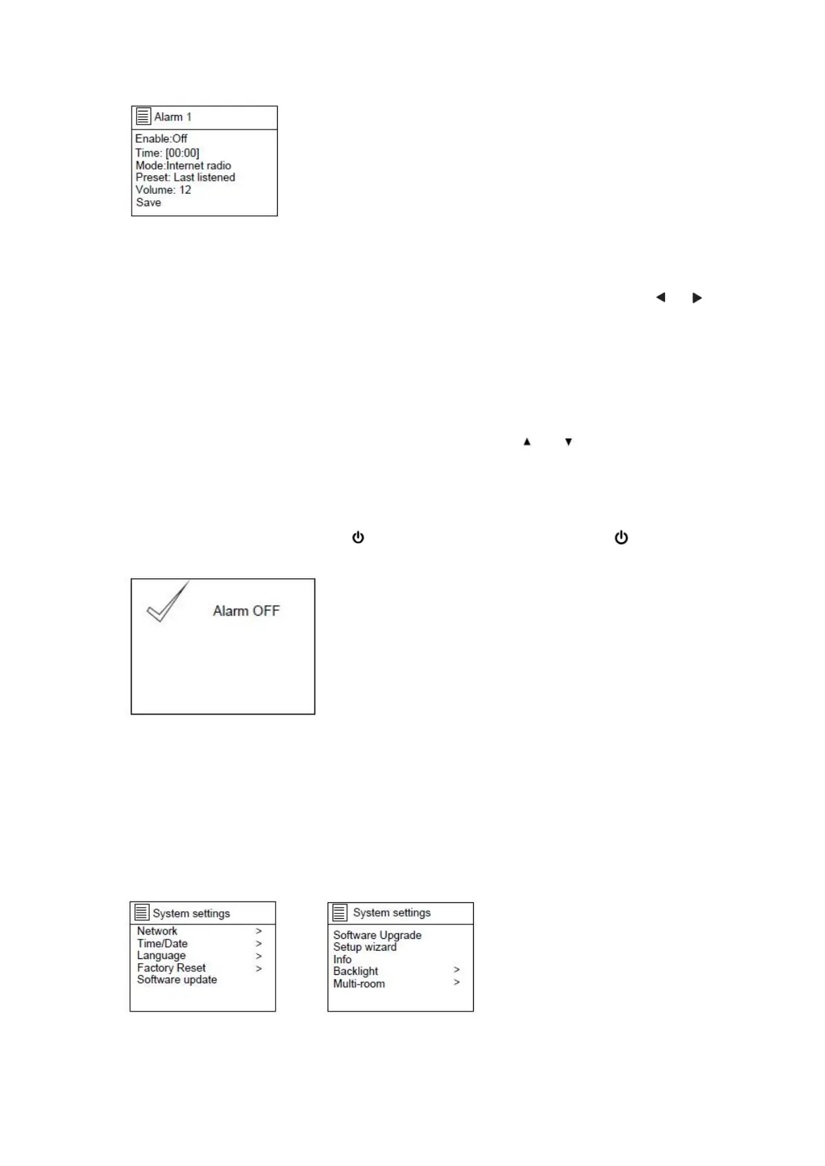Select "Preset" to set the alarm sounding by the last listened or the stored station in Internet
