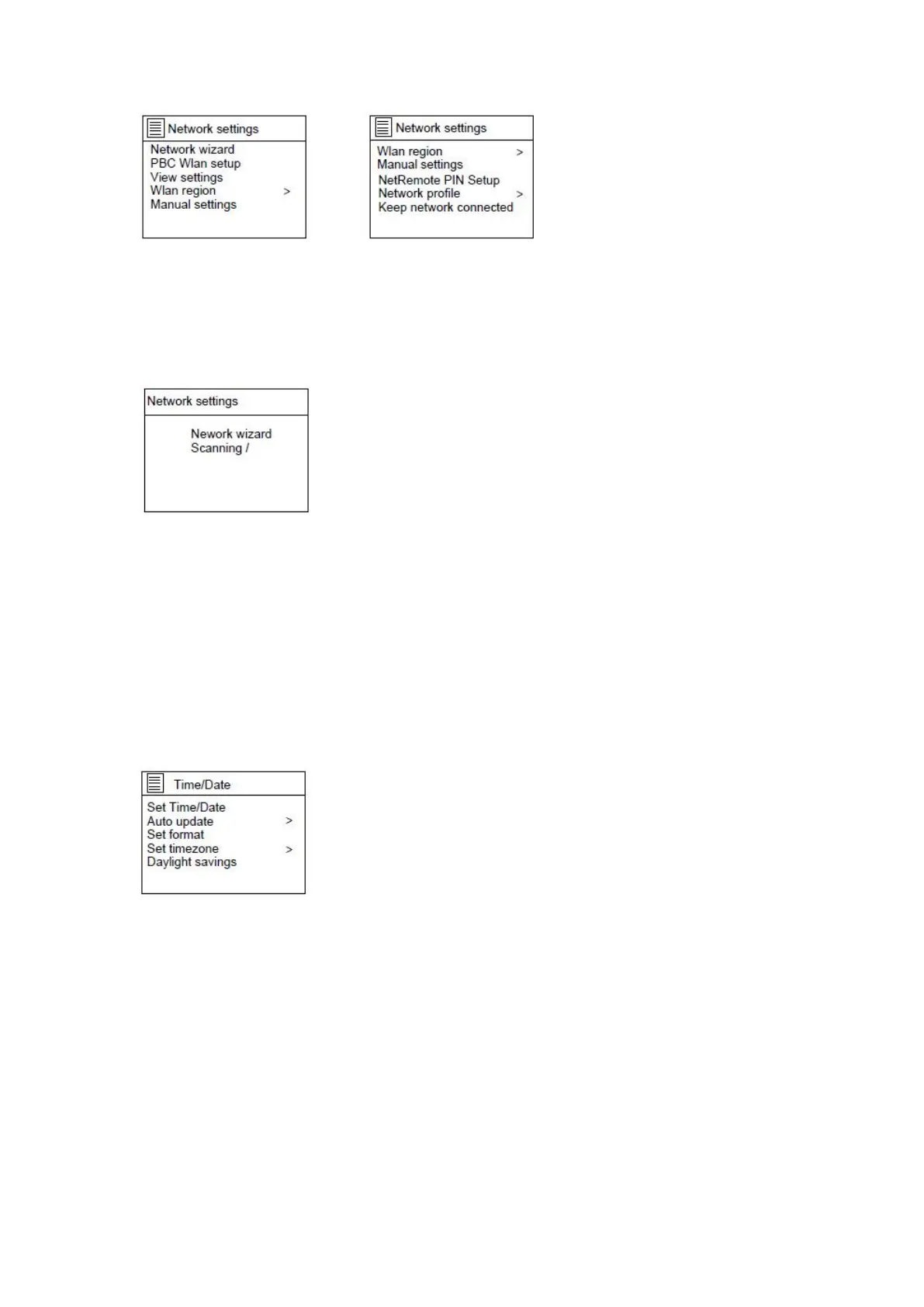 When Network wizard is selected, the unit will scan the available wireless network.