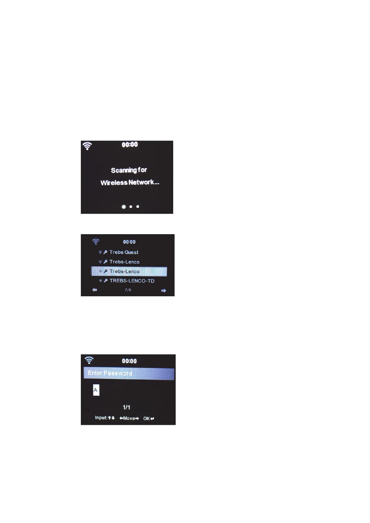 When selecting this option the MC-460 will scan for available WIFI networks.