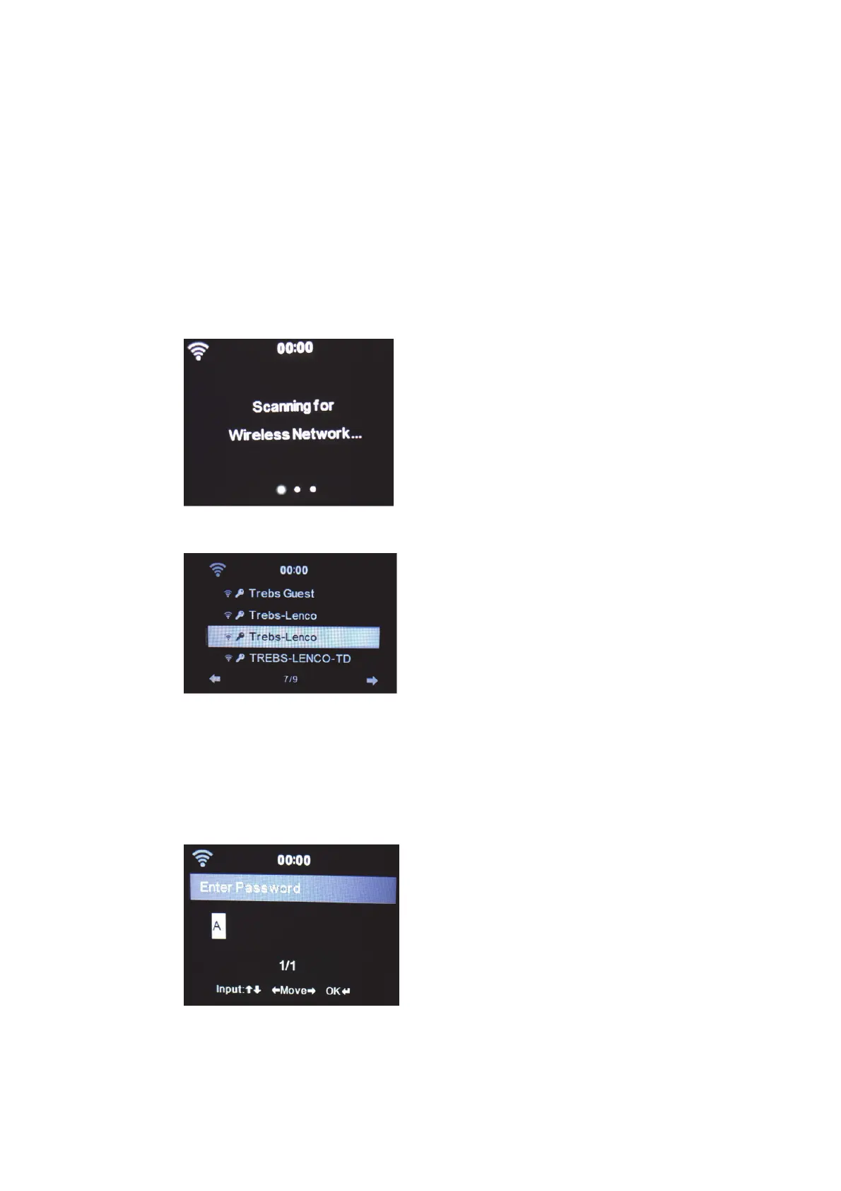 De MC-460 zal naar beschikbare wifi-netwerken zoeken wanneer u deze optie selecteert.