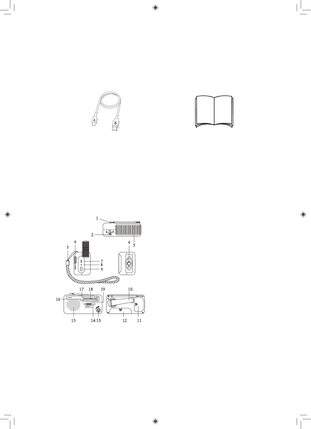 (parte superior del producto), como girando la manivela (plegada por detrás del producto) o