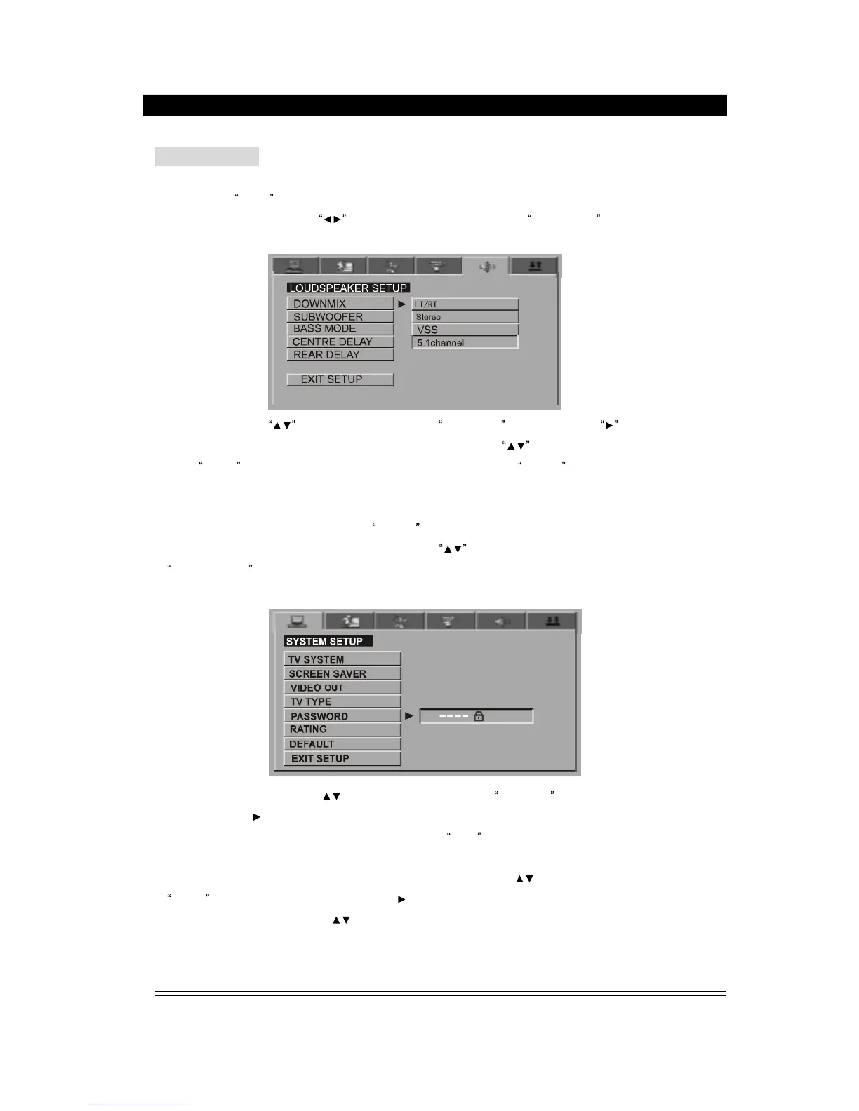 3. After finished the setup of password, press the direction button
