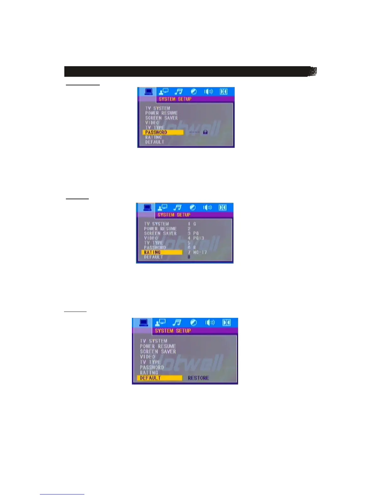 Notes: If the password option is locked, you can not set the ratings limit. The rating limit does not