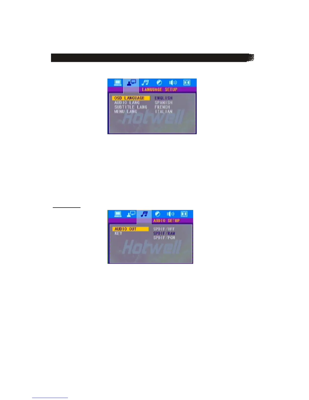 *AUDIO LANG: you can select the default AUDIO language among: ENGLISH, FRENCH,
