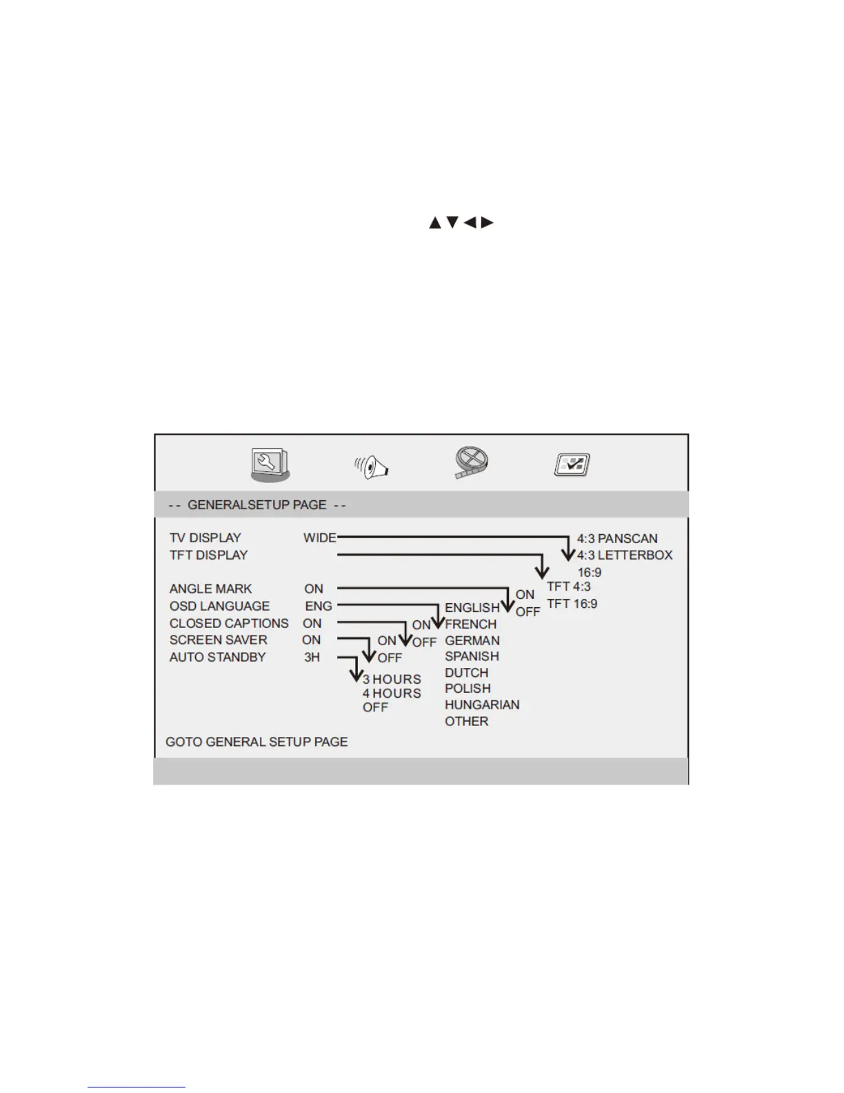 TV-DISPLAY: Wählt das Bildformat für die Wiedergabe.