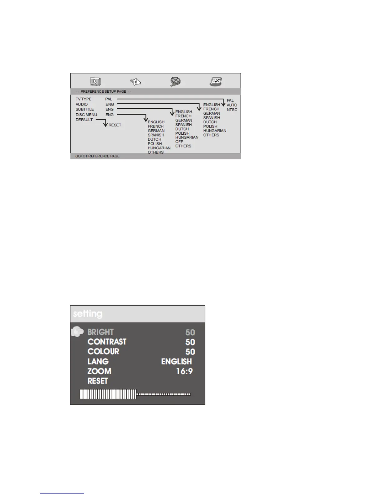 Disc Menu (Discmenü): Hier wählen Sie die Menüsprache der Disk, falls verfügbar.