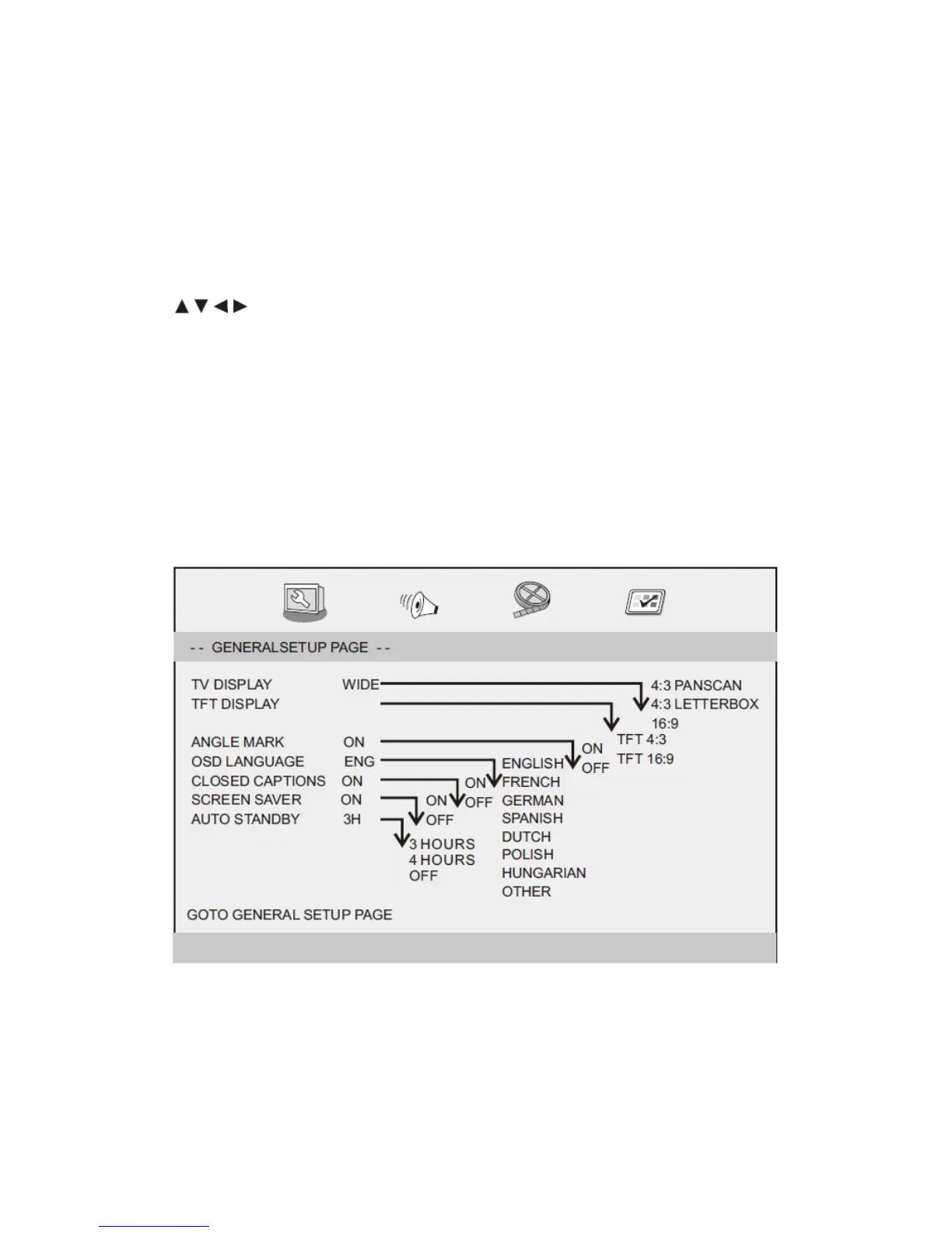 Pulse el botón SETUP para ir al menú de configuración. Use los botones de dirección