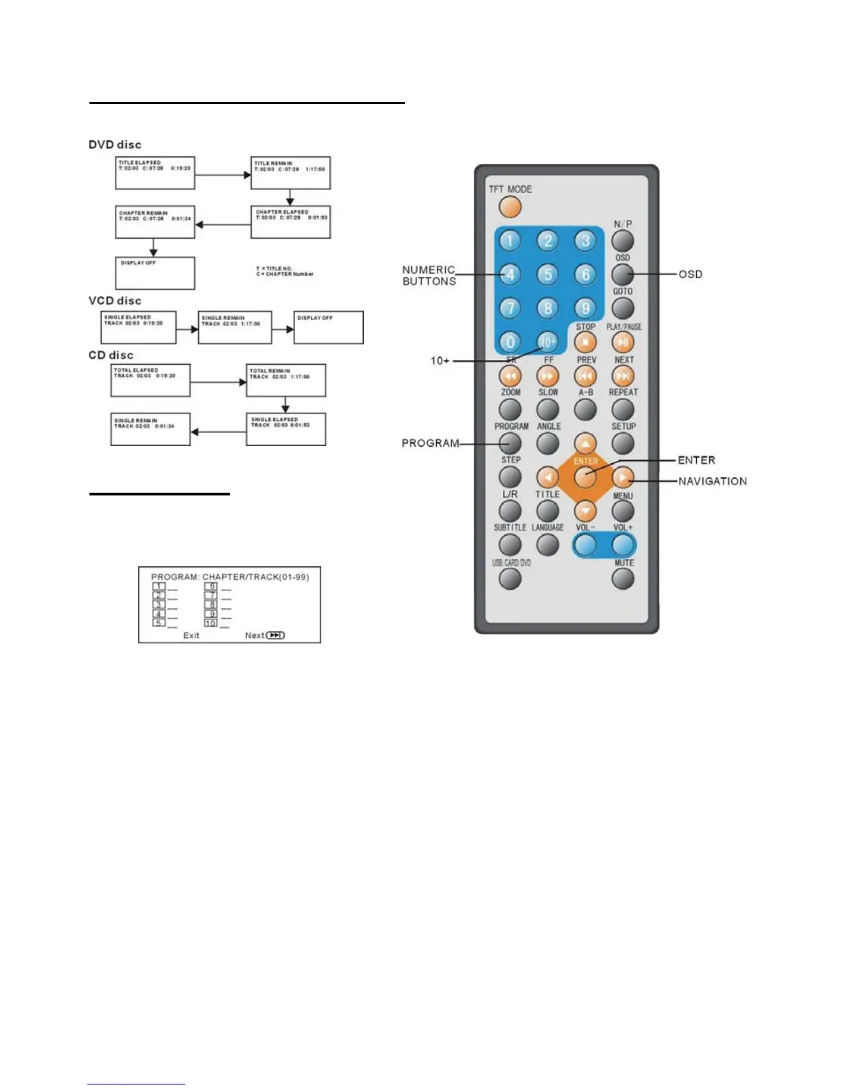 NOTE: Leading zero is not necessary. If the track number is more than 10, press the 10+ key
