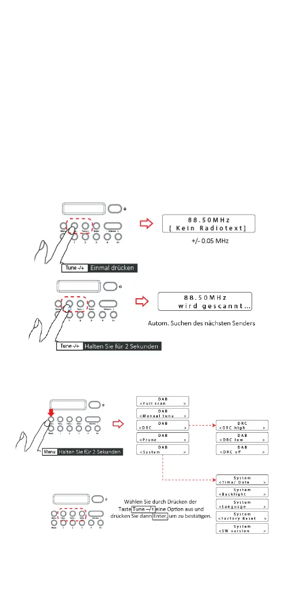 Wenn Sie kurz MENU drücken, dann wird jedes Mal der