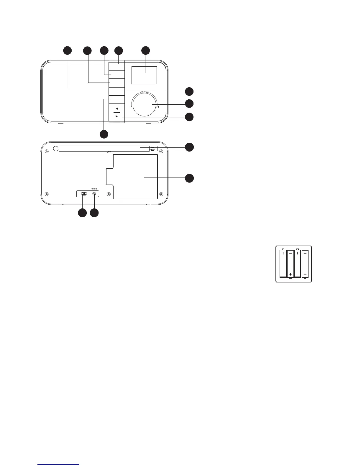 Raadpleeg het diagram bij het vervangen van batterijen.