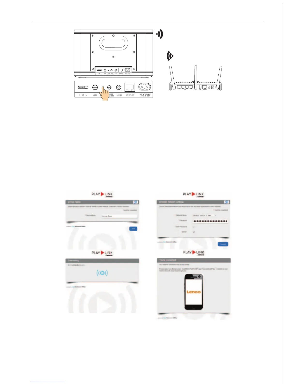 Press the WPS key of the router and the Quick Connect key of the speaker sim-