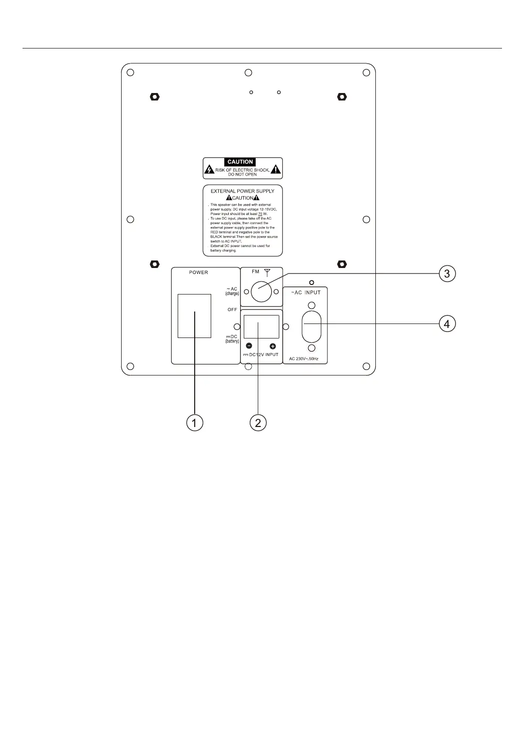 Wanneer u de schakelaar op AC zet, werkt de speaker op 230V en zal de accu opgeladen worden.