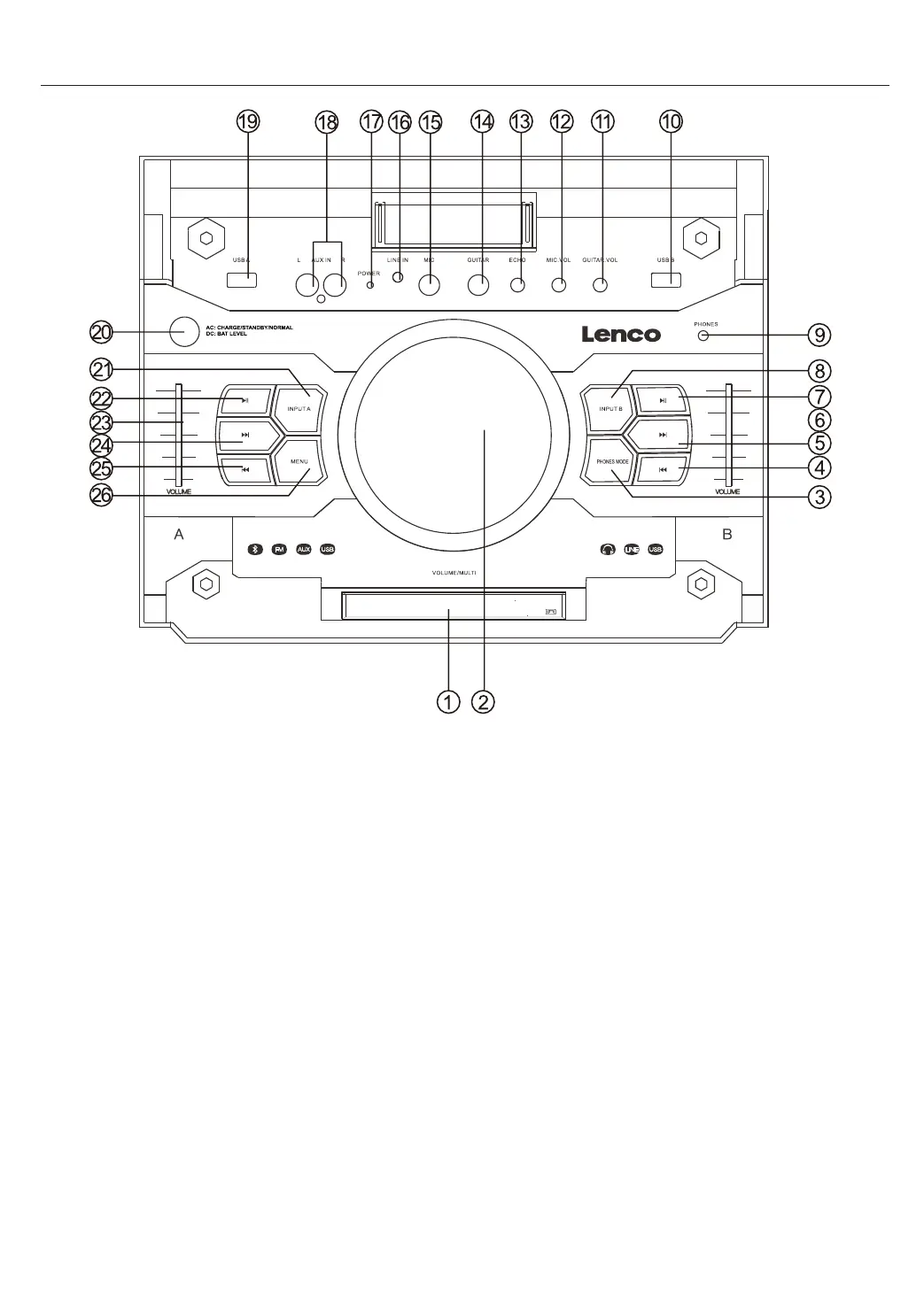Druk op deze knop om verschillende HOOFDTELEFOON modi uit te kiezen, zoals INVOER A, INVOER B,
