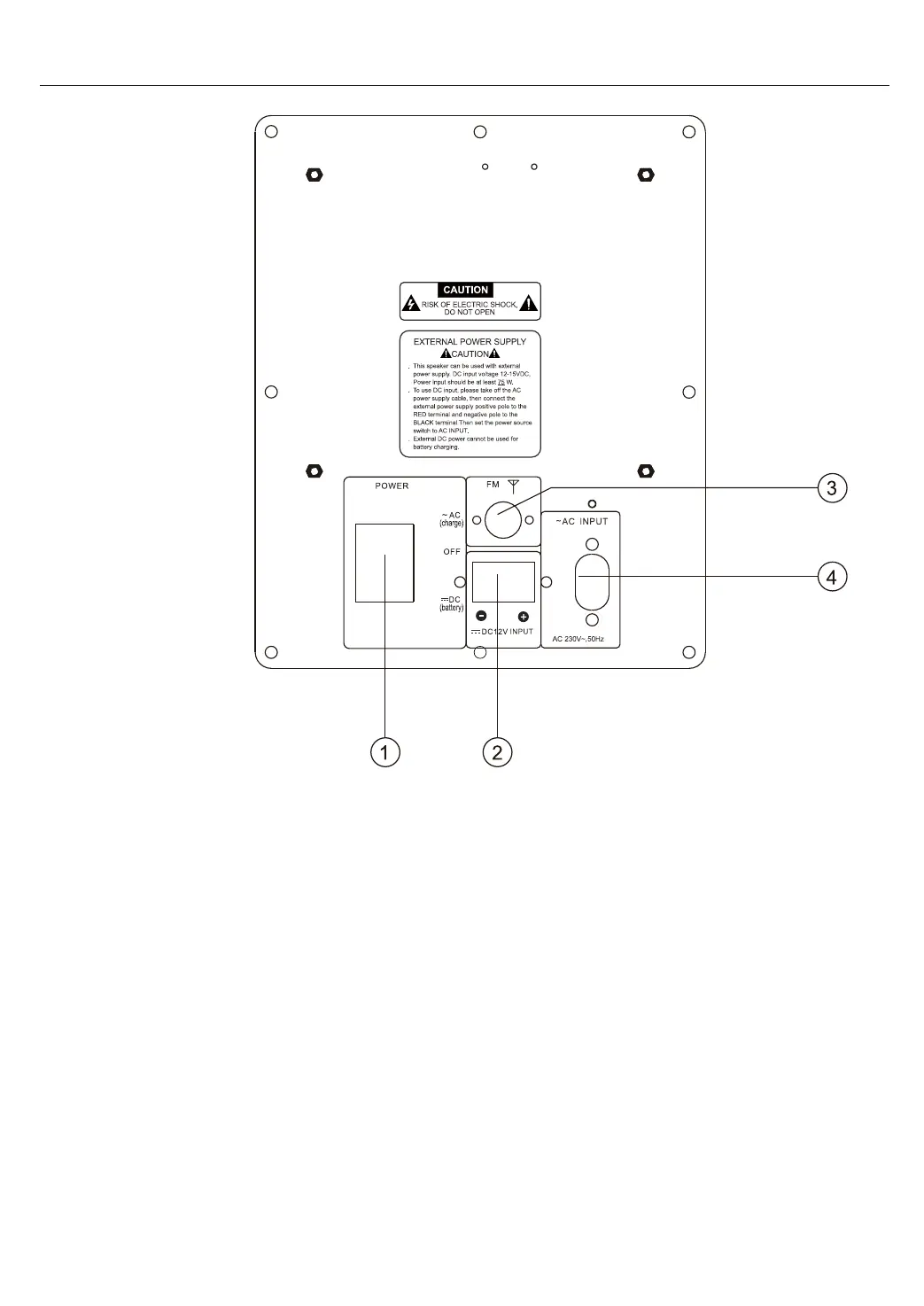 Cuando se cambia al estado CA, el altavoz funciona a 230V y se cargará la batería.