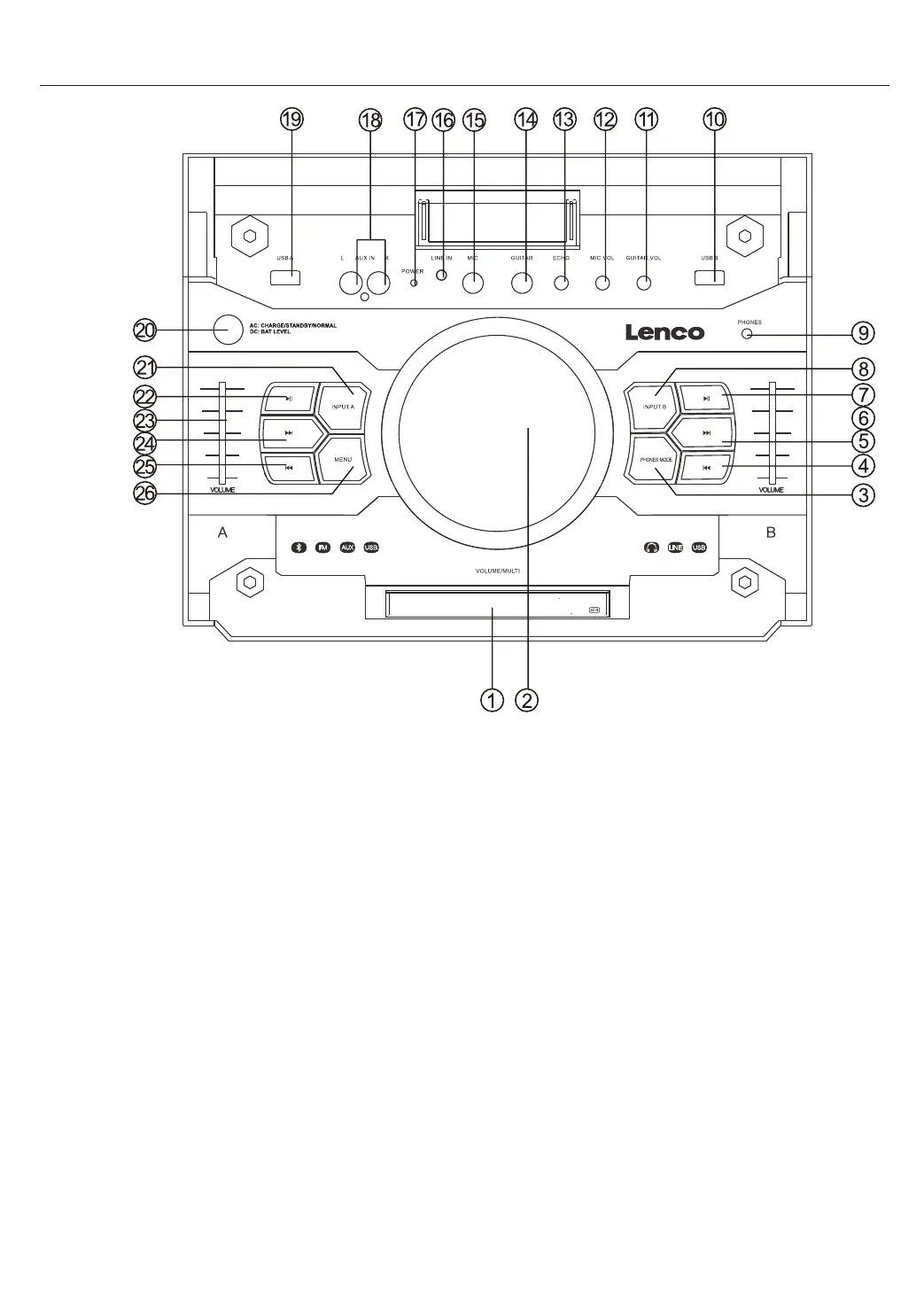 Pulse esta tecla para elegir entre los diferentes modos ENTRADA B, LÍNEA, USB B