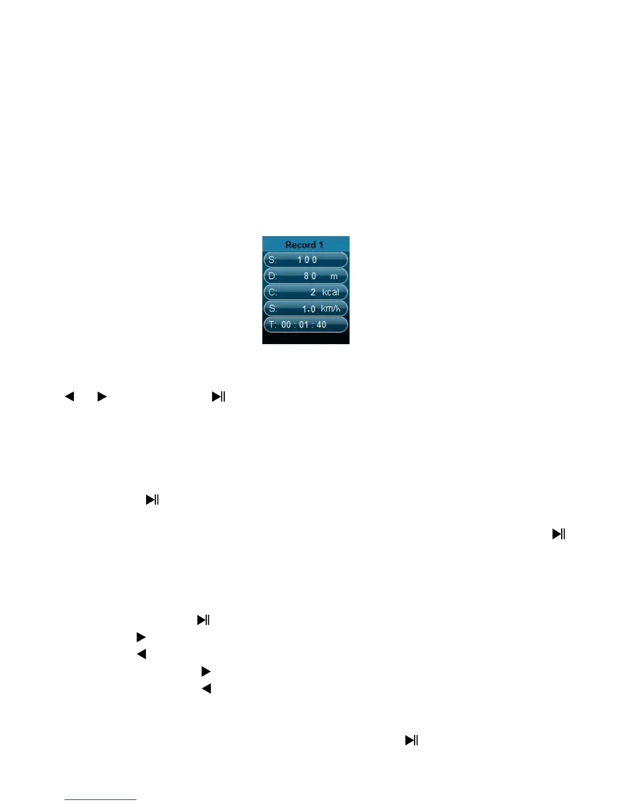 “Center” ( ) button to start the music play music with the pedometer