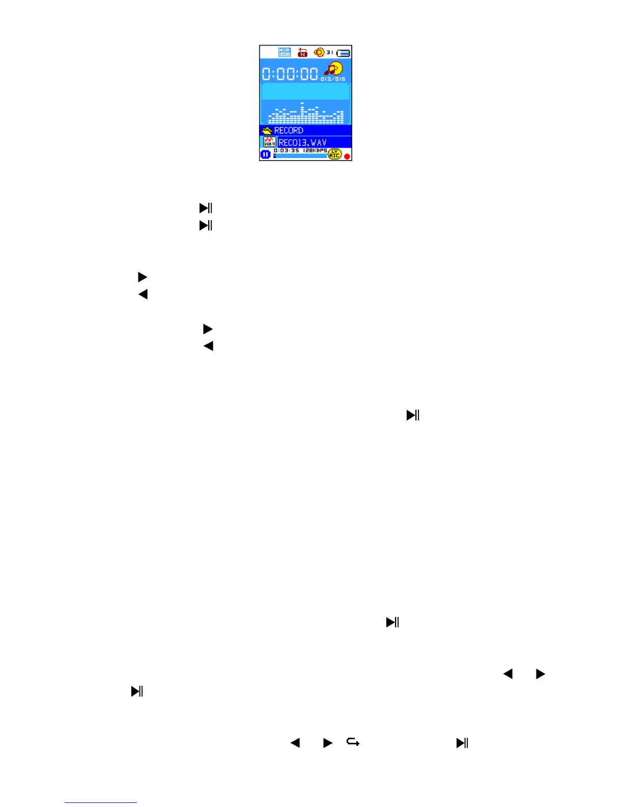 • Press the Center ( ) button to start play the recorded file.