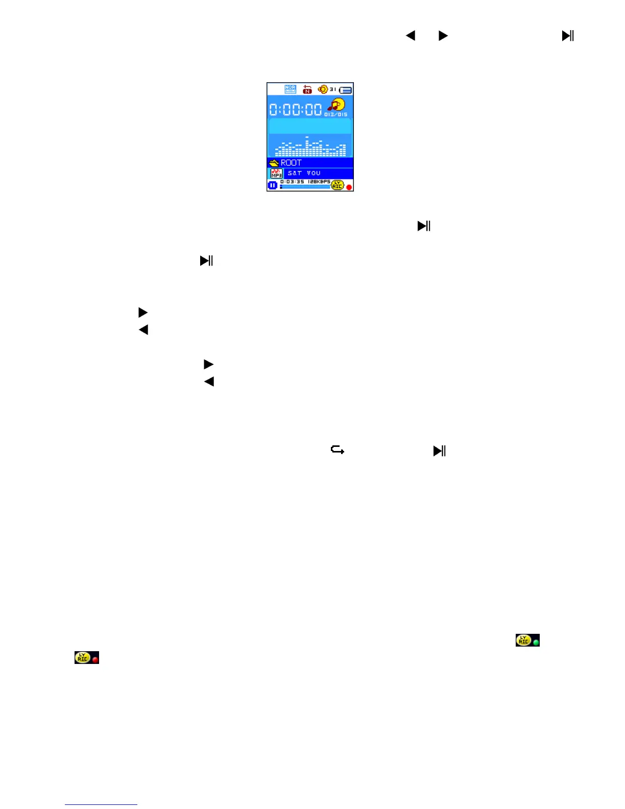 • In Music Now Playing screen, press the Center ( ) button to start the