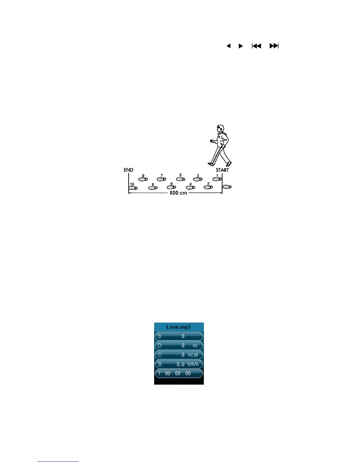 buttons. Once average stride length is set, it will return to pedometer menu. (Adjustment range