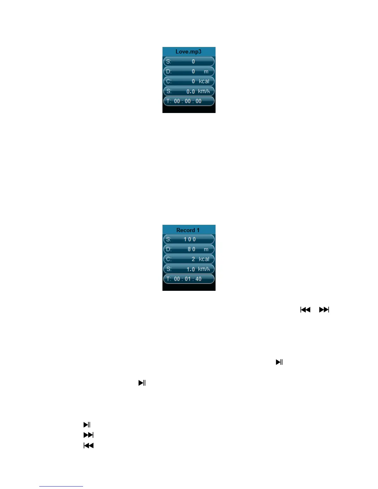 song in pedometer counts display mode. The screen will return to pedometer menu.