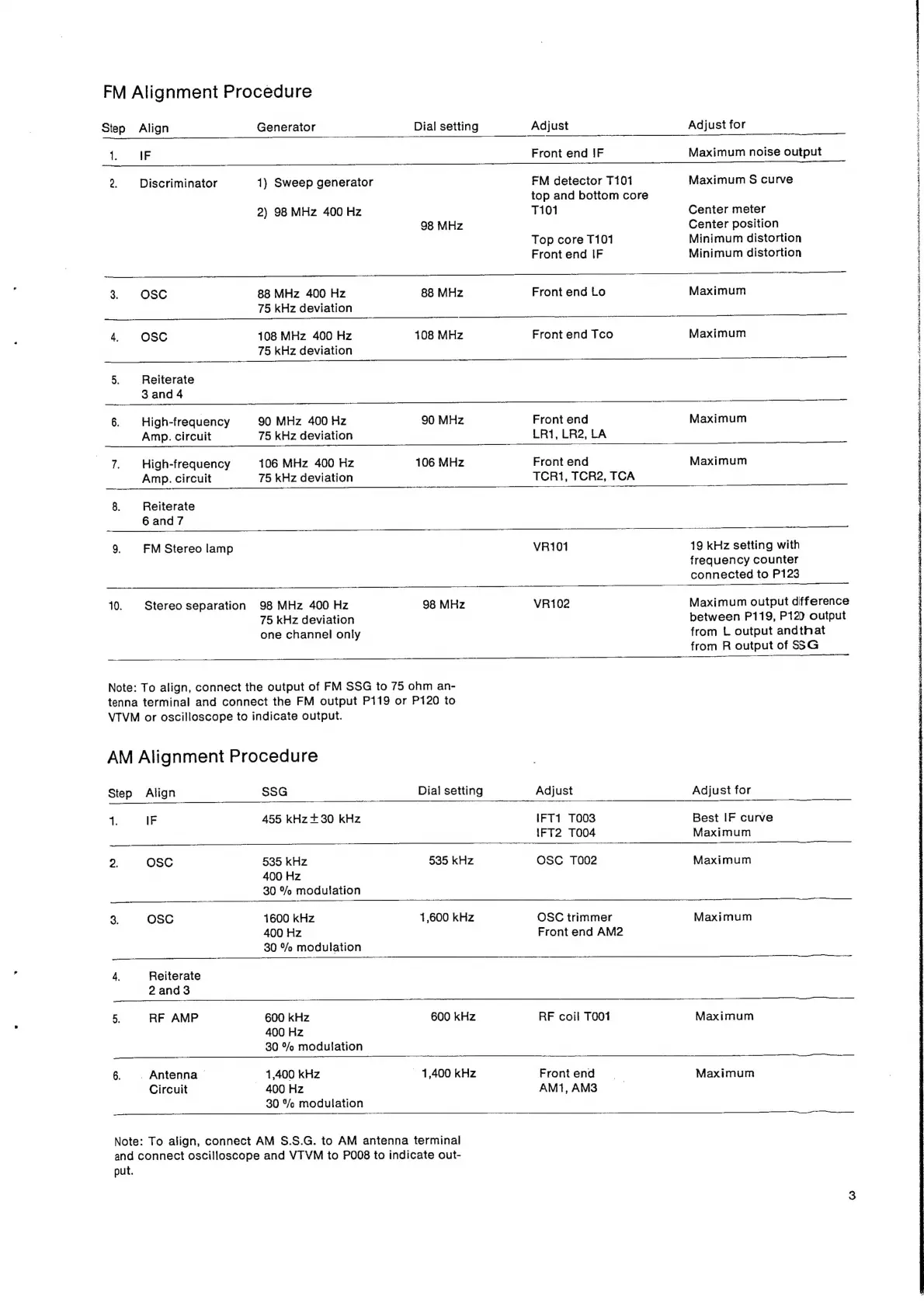 LENCO R25 - FM Alignment Procedure; AM Alignment Procedure