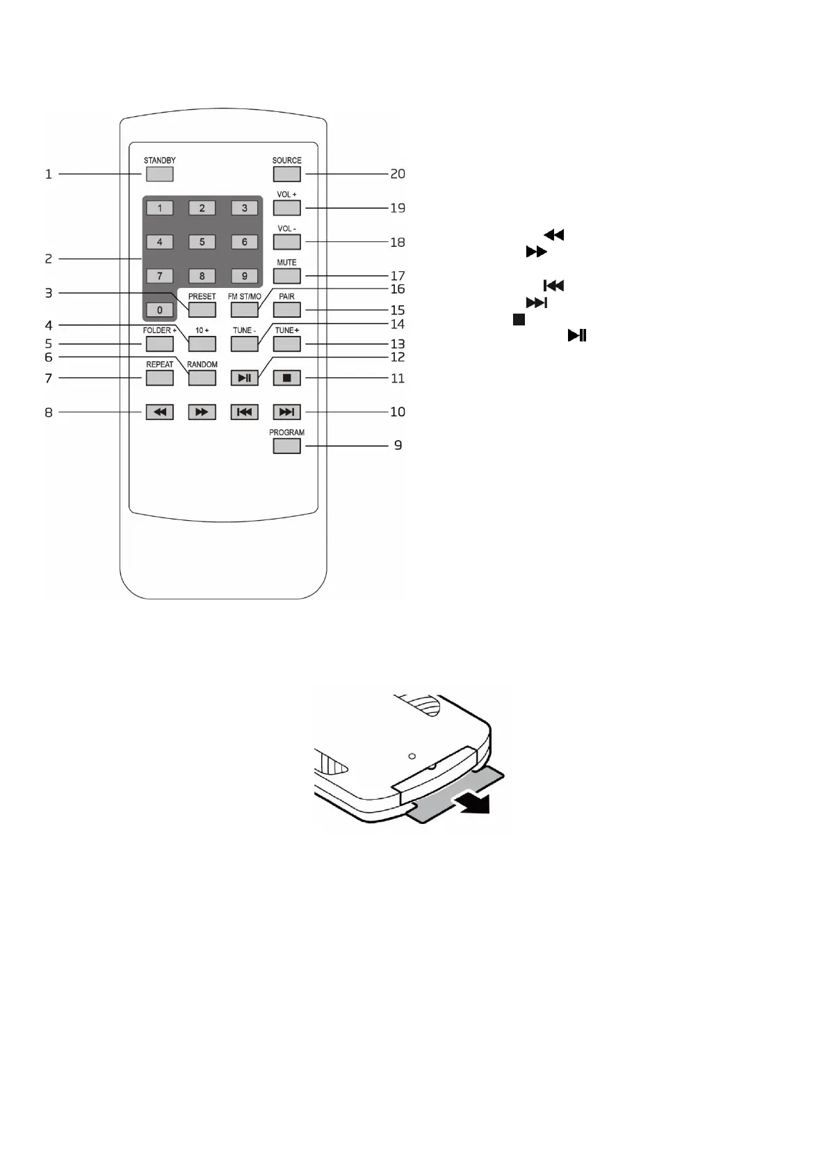 Une pile CR2025 est déjà installée dans la télécommande. Avant utilisation, sortez la bande isolante du compartiment à pile comme