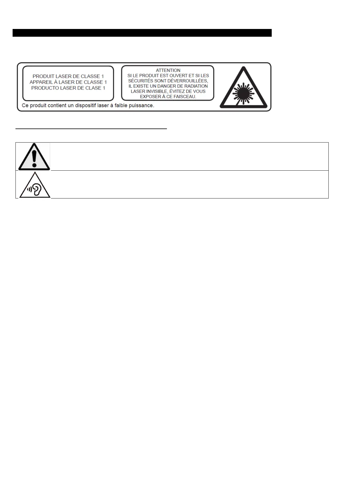 AVERTISSEMENT : Pour éviter une éventuelle détérioration de l’ouïe, n’écoutez pas la musique à
