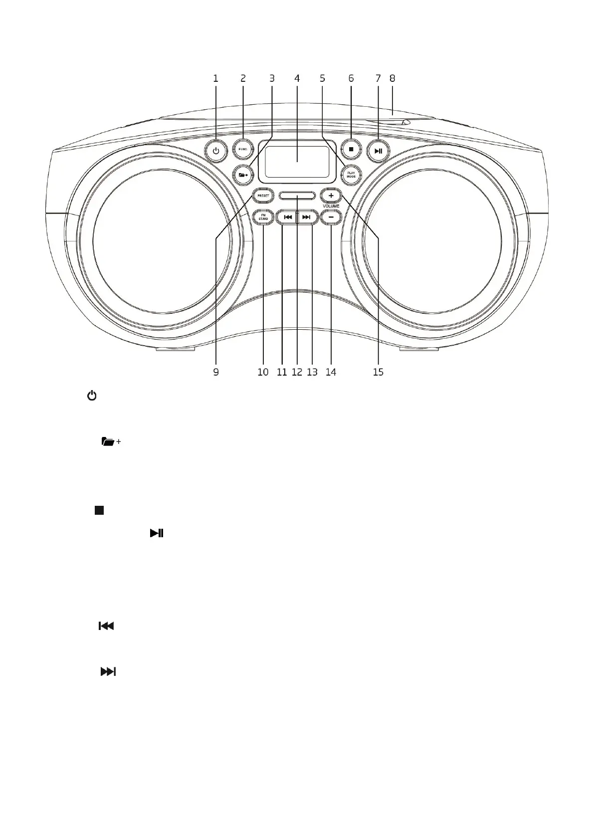CD/USB : Púlselo para cambiar entre el funcionamiento de reanudar la reproducción pausa.