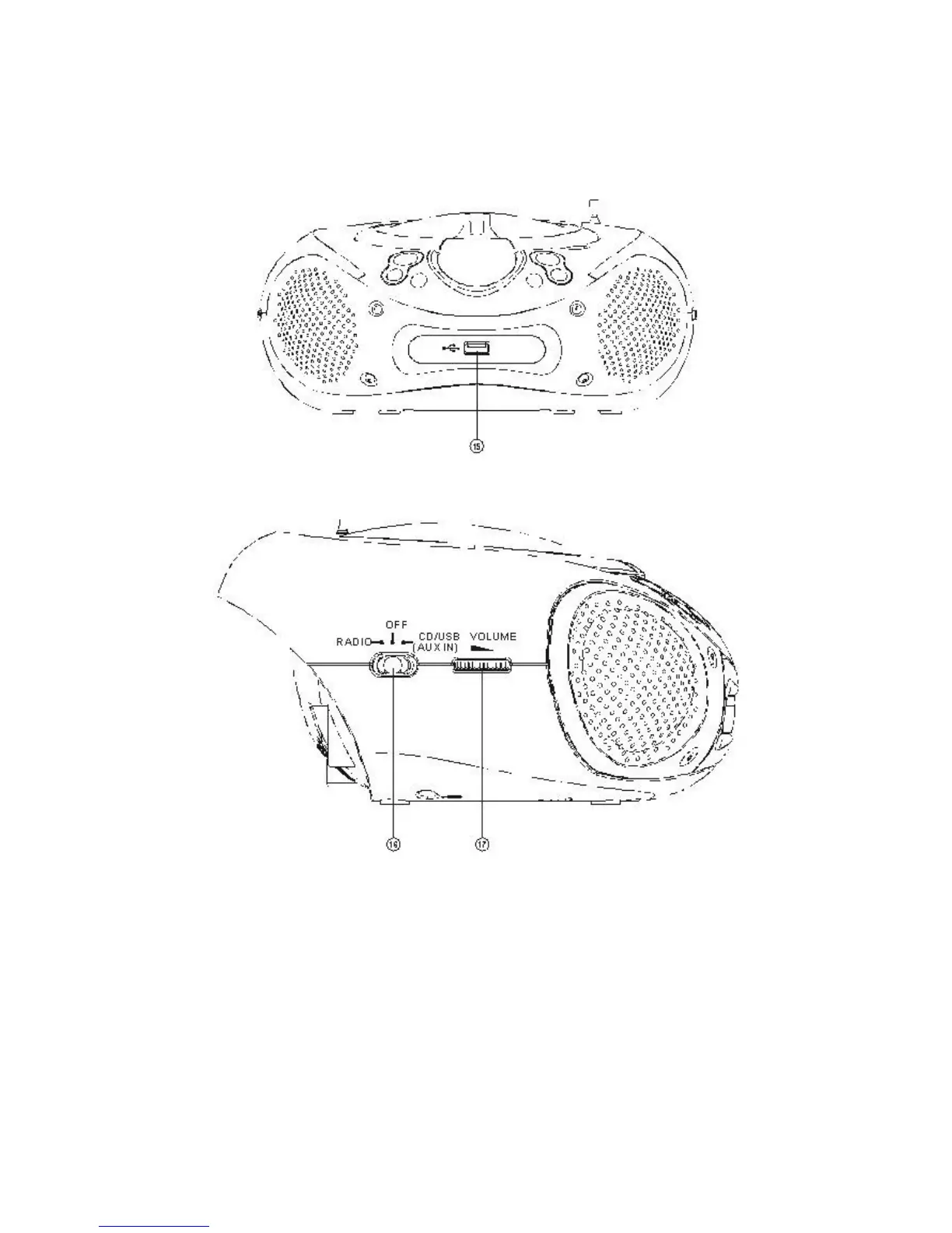 15. USB socket: connection for a USB device.