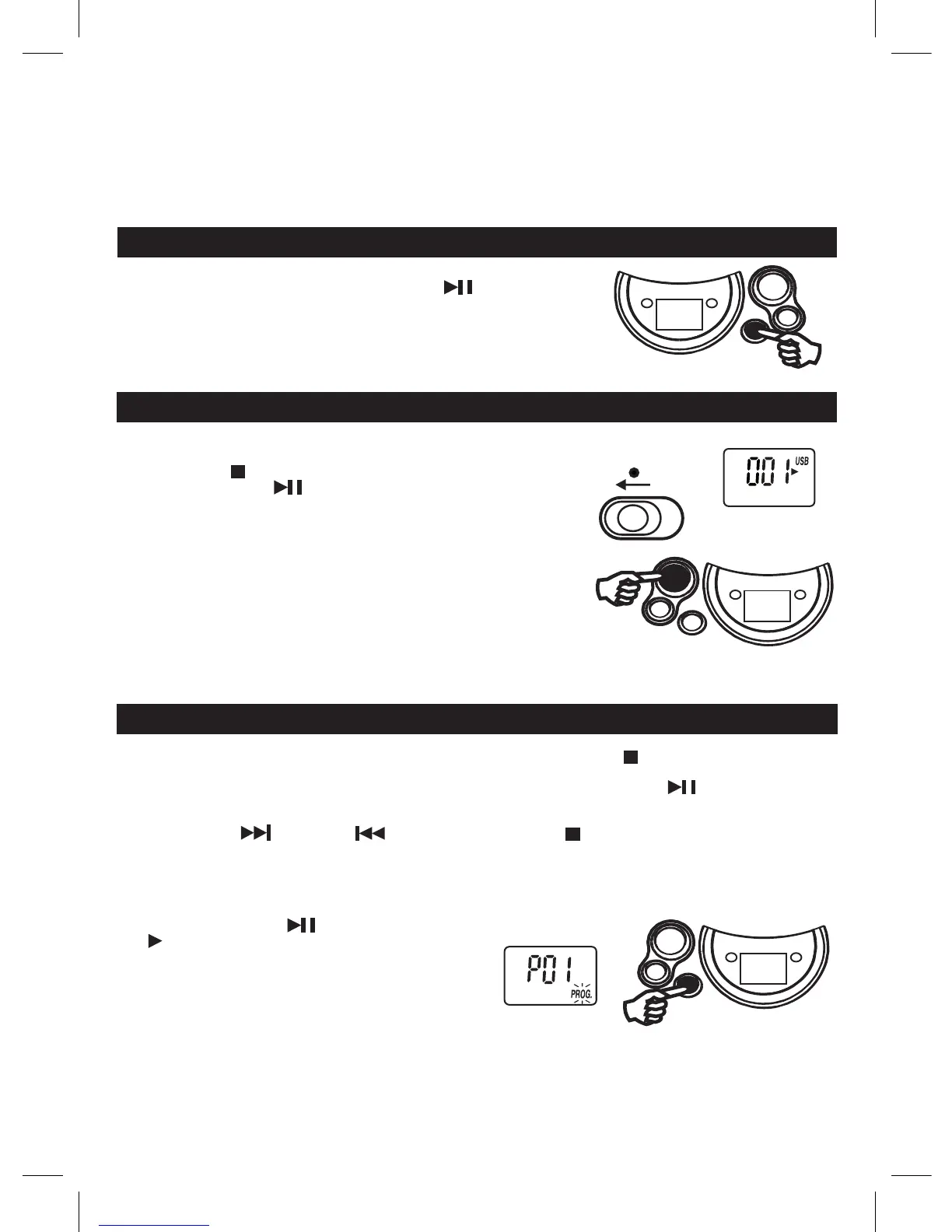 folder/album at increasing order, press PLAY/PAUSE button to start the