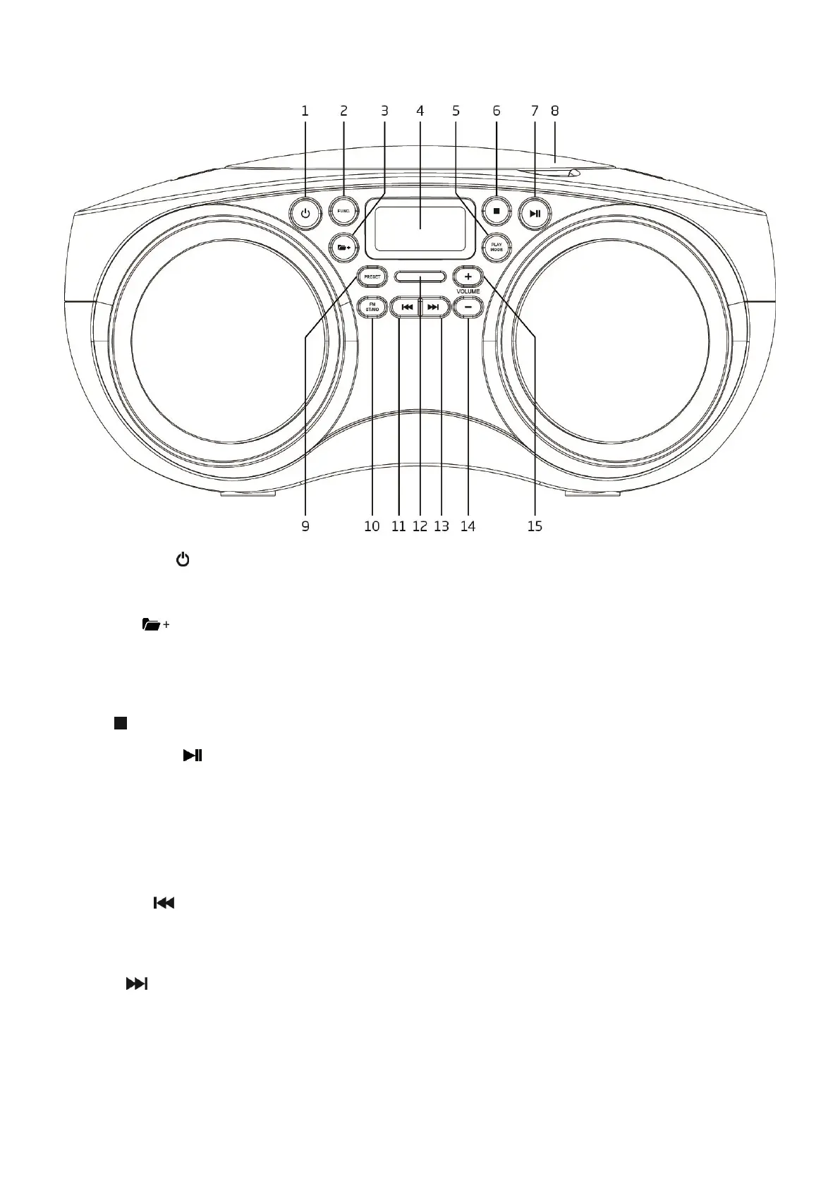 CD/USB/BT : Appuyez dessus pour mettre la lecture en pause ou bien reprendre la lecture.