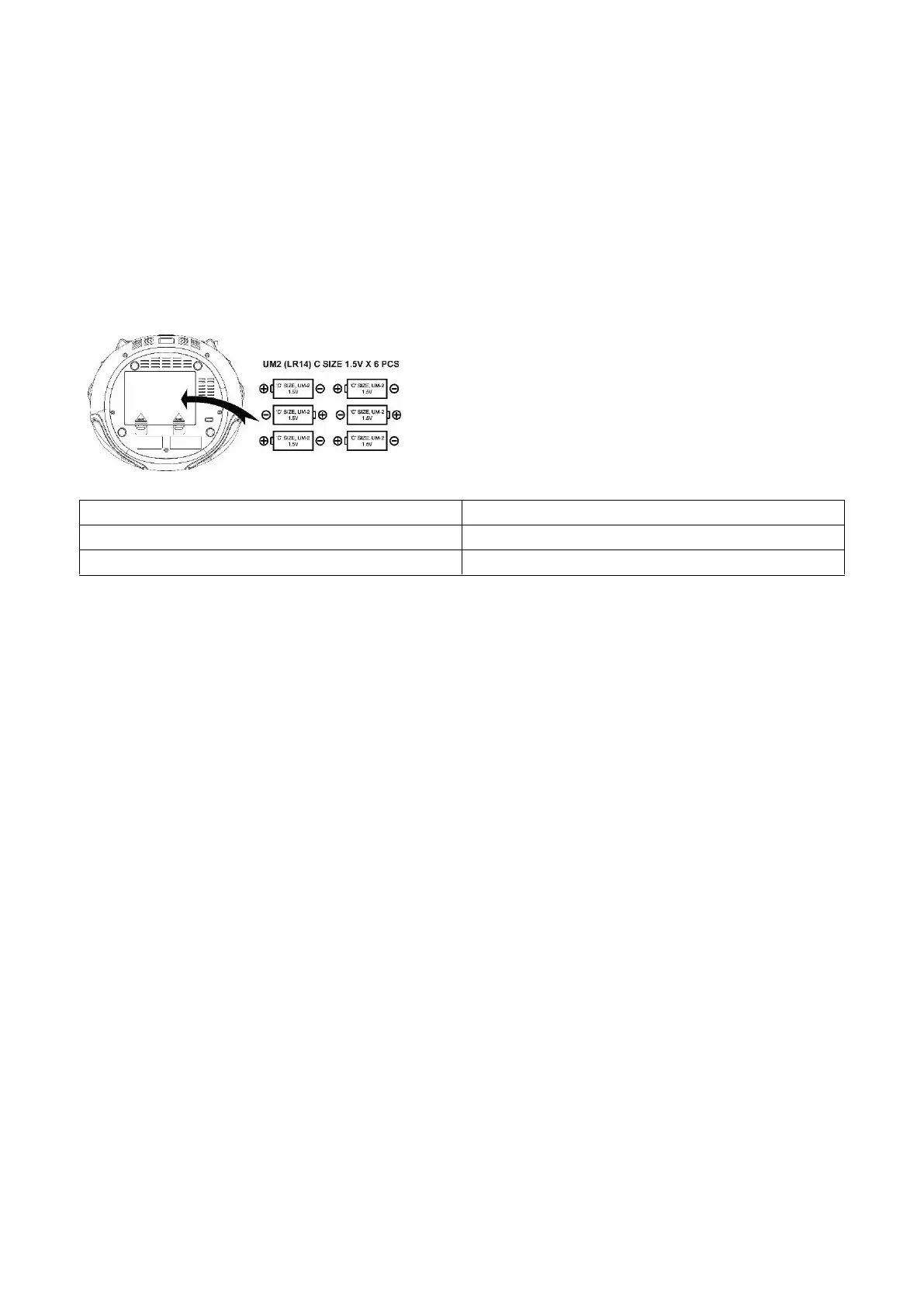 voedingskabel los te koppelen van de ingang AC~IN. Plaats vervolgens 6 stuks type C (UM-2) batterijen in de